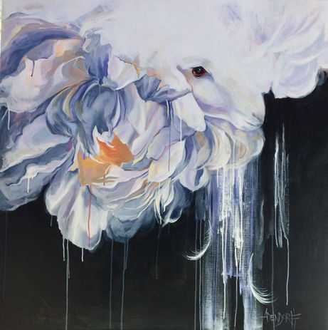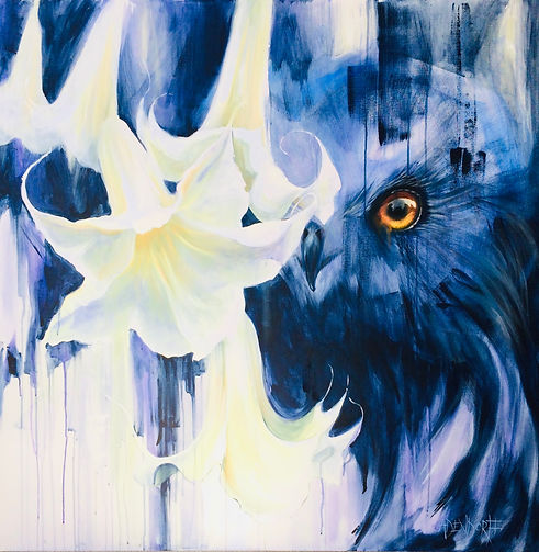 This series of large-scale mixed media paintings is created with layered acrylic and oil on canvas. Each work is professionally stretched on deep gallery bars and ready to hang.